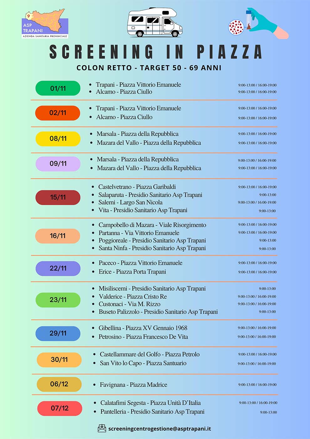 tumore del colon retto. I camper dell’Azienda sanitaria, con personale
